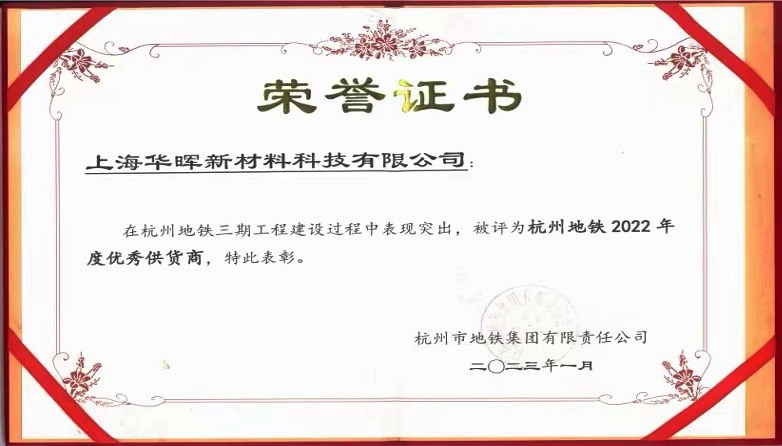 新春伊始,华晖新材料迎来了“开门红”——地铁集团授予华晖新材料“杭州地铁2022年度优秀供货商”称号。